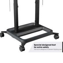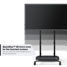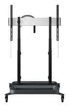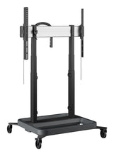 Vogel's RISE 5205 Elektrische display lift trolley 50 mm/s (zwart, EU). Montage: Vrijstaand, Maximale gewichtscapaciteit: 120 kg, Minimale schermgrootte: 165,1 cm (65"), Maximale schermgrootte: 2,18 m (86"). In hoogte verstelbaar. Kleur van het product: Zwart